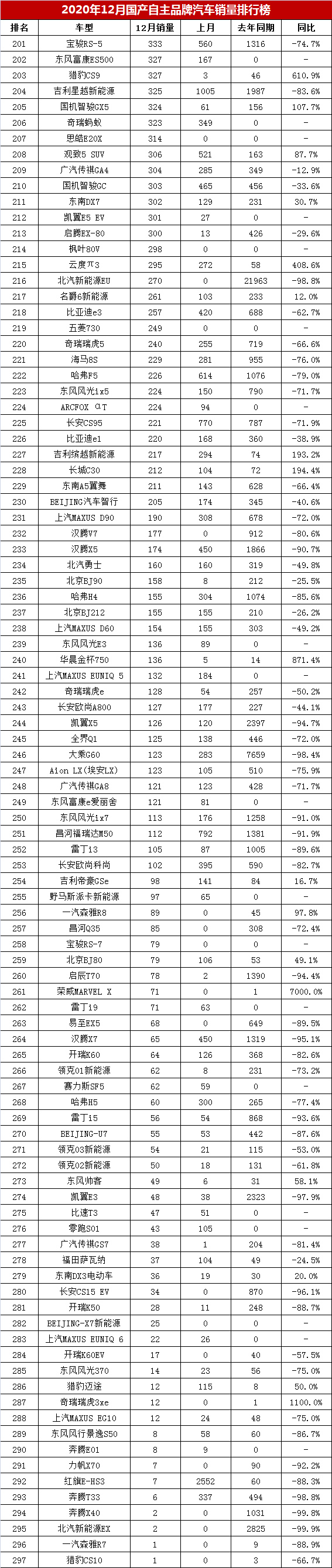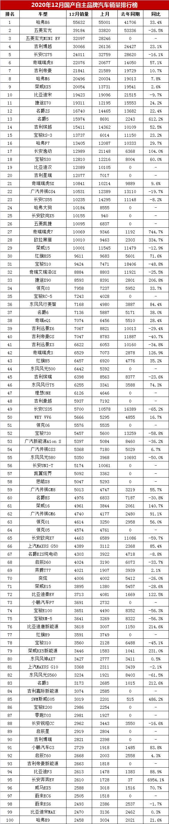 【2020年12月国产自主品牌汽车销量排行榜】2020年12月,国产自主品牌汽车市场销售增幅明显。据购车网编辑整理统计显示,2020年12月国产自主品牌乘用车销量达到99.3万辆,同比增长9.4%,环比增长7.7%,实现了同比和环比双增长。