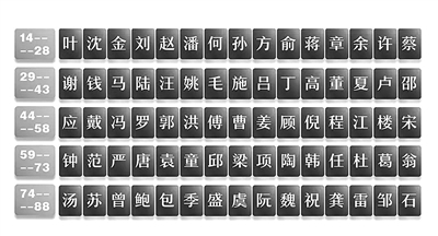 目前,全省共13个姓氏人数突破百万大关,这13个姓氏占全部姓氏0.6,却占了人口总数的44.7%。