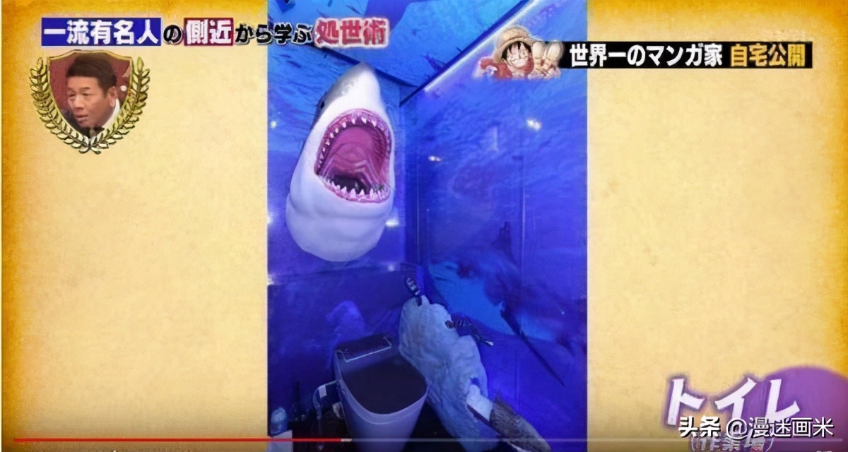 让人最为震撼的还是尾田荣一郎的豪宅,在明石家秋刀鱼主持的节目《真假TV》中,他就带领大家去了他那充满梦幻般的家。