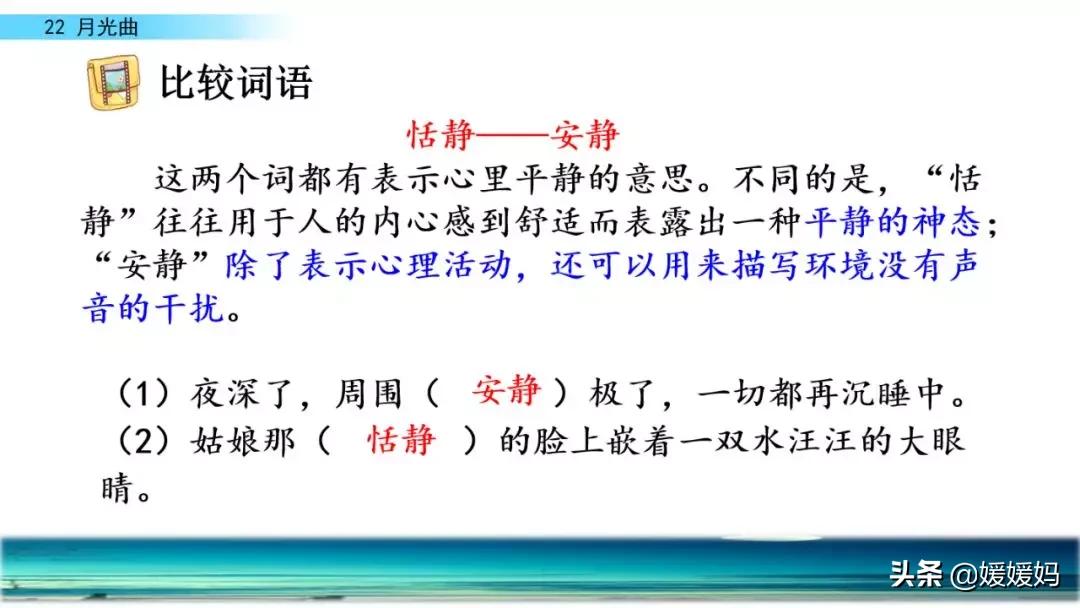 恬静——安静 照耀——照射