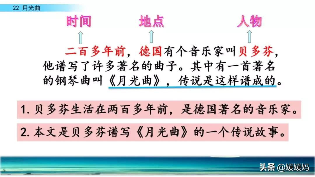 本文讲述了德国著名音乐家贝多芬即兴创作《月光曲》的故事,表现了贝多芬对穷苦人民的同情和热爱,以及他丰富的想象力和卓越的才华。同时也告诉人们,美妙乐曲的创作不仅要依靠丰富的想象力,更源于高尚而真挚的情感。