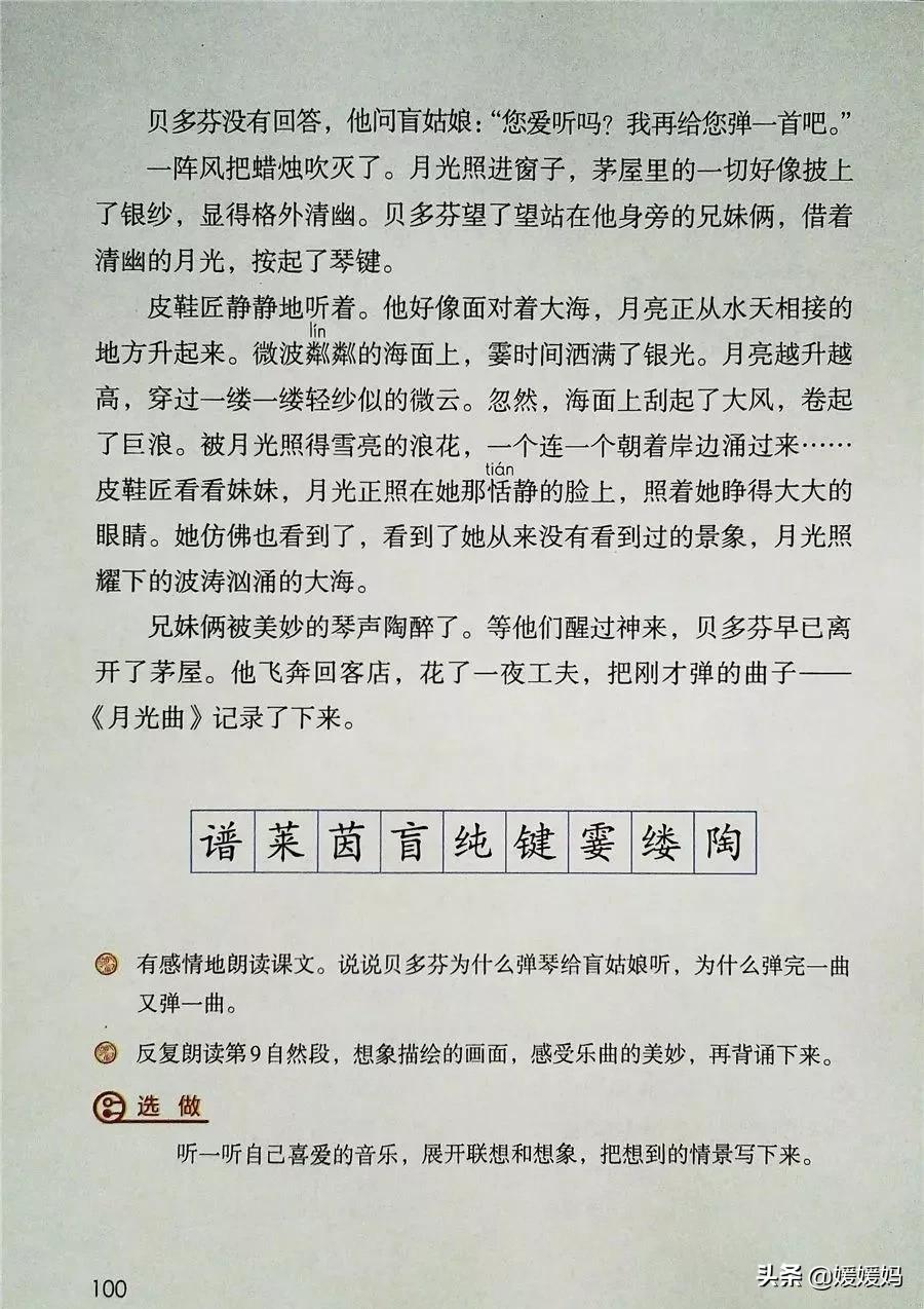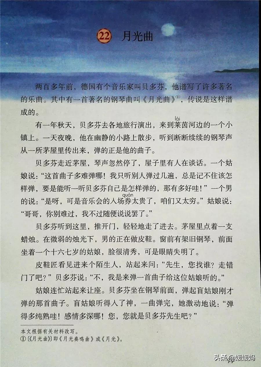 答:这篇课文讲述了德国著名音乐家贝多芬因同情穷鞋匠兄妹俩而为他们弹琴,有感于盲姑娘对音乐的痴迷而即兴创作出《月光曲》的传奇故事。