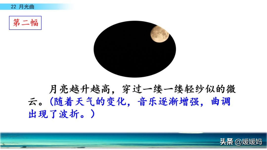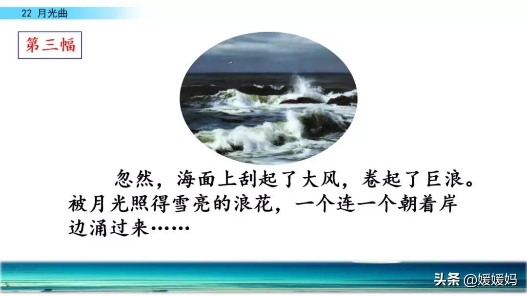 3.月亮升起,海面微波粼粼 月亮升高,穿过微云 海面波涛汹涌