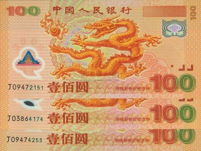 千禧年龙钞发行面值是100元,发行量1000万张,发行数量不算大,是中国首枚塑料纪念钞,比较有纪念意义。