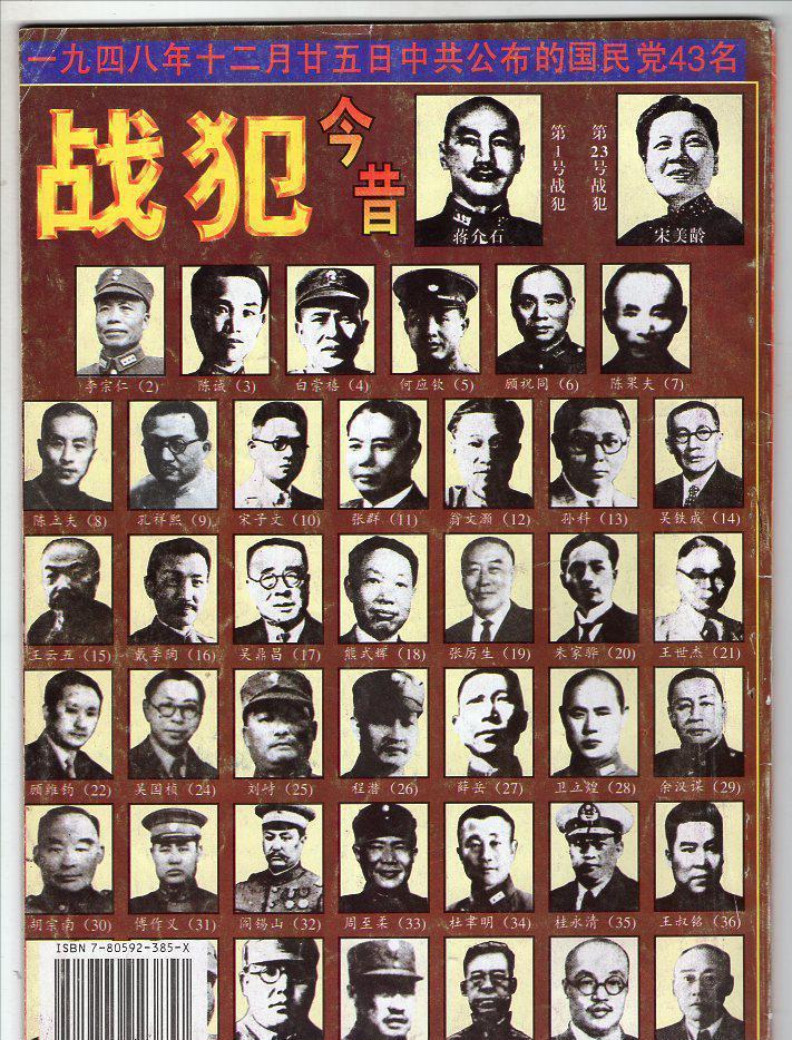 43名战犯中,既有头号战犯蒋介石、李宗仁、陈诚、白崇禧、何应钦,也包括国民党诸多高级将领和政府要员。
