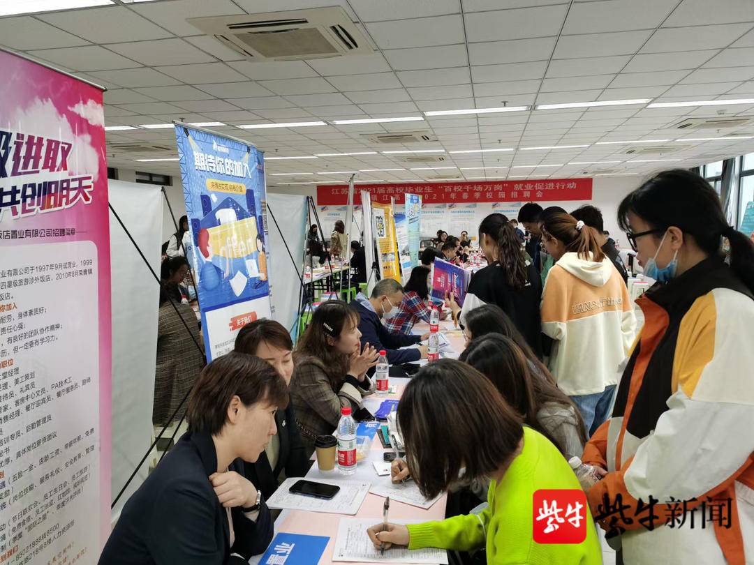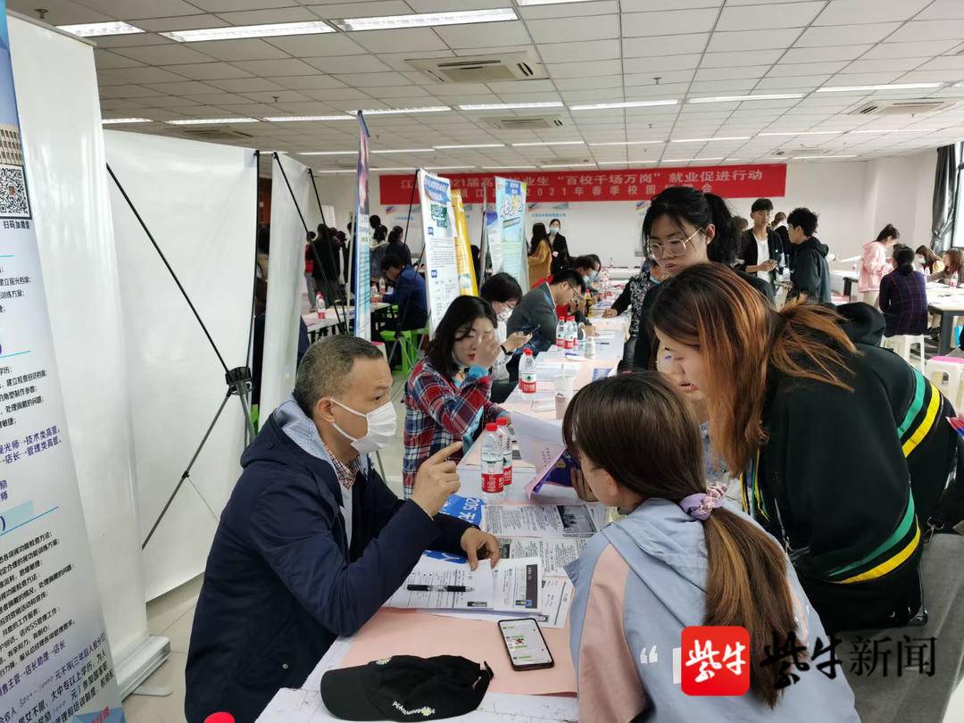 扬子晚报网4月21日讯(通讯员 吴建强 记者 万凌云) 4月21日下午,江苏省2021届毕业生“百校千场万岗”就业促进行动暨镇江高专2021年春季校园招聘会,在镇江市高专文宗楼举行。该校2018级、2019级近5000学生,参加了本次招聘。