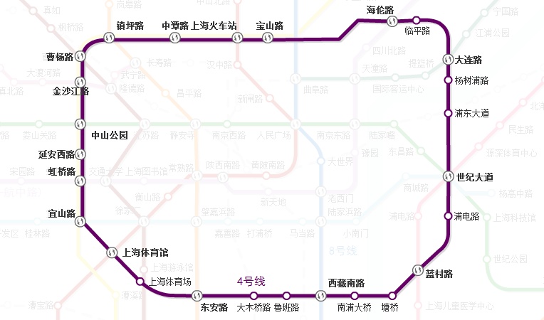 4号线是上海地铁唯一的一条环状线,本身形状就是圆的,而且与1号线、2号线组成了“申”字代表着上海,还与3号线重叠,这么会交际的地铁线,你见过吗?