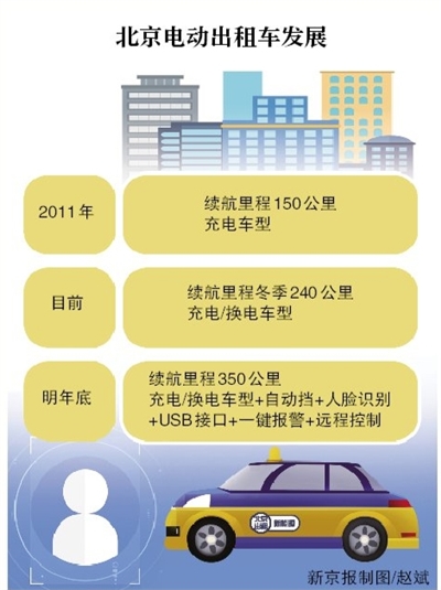超过北京出租车总数20%;续航里程350公里,计价与普通燃油出租车基本一致,不收1元燃油附加费