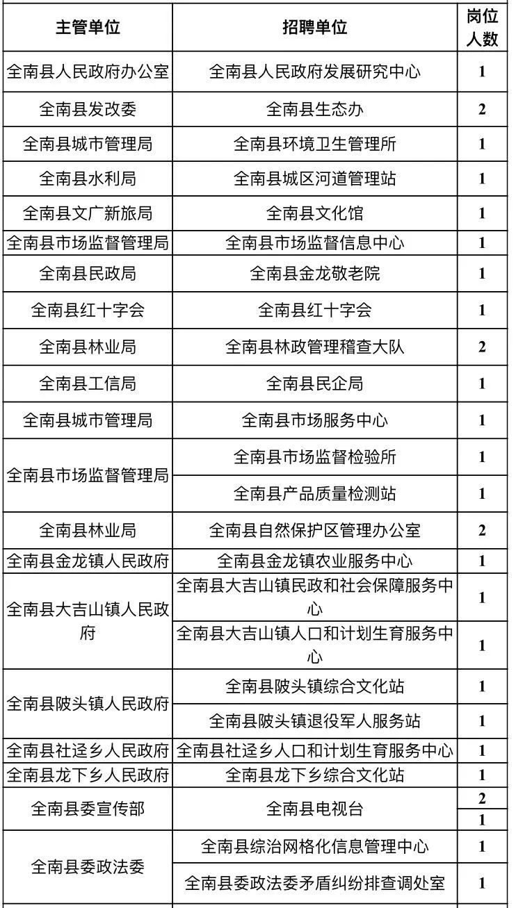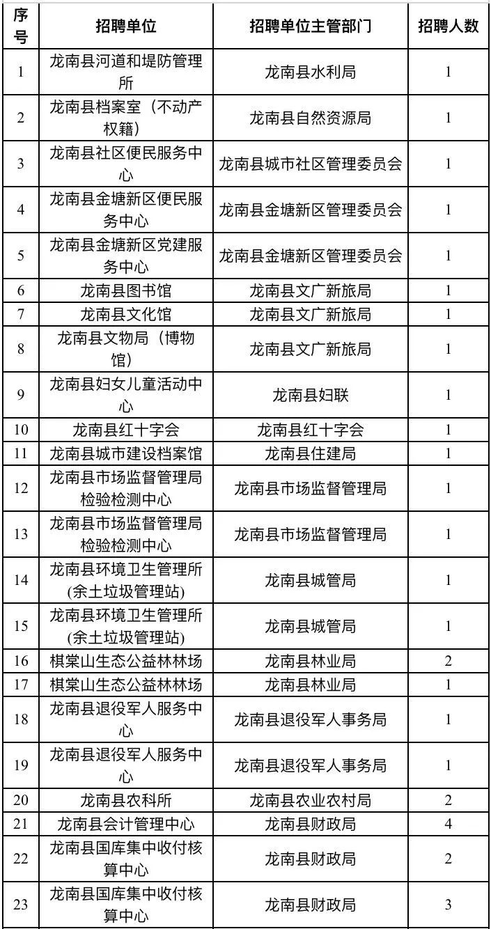 龙南县面向社会公开招聘96名事业单位编制内工作人员: