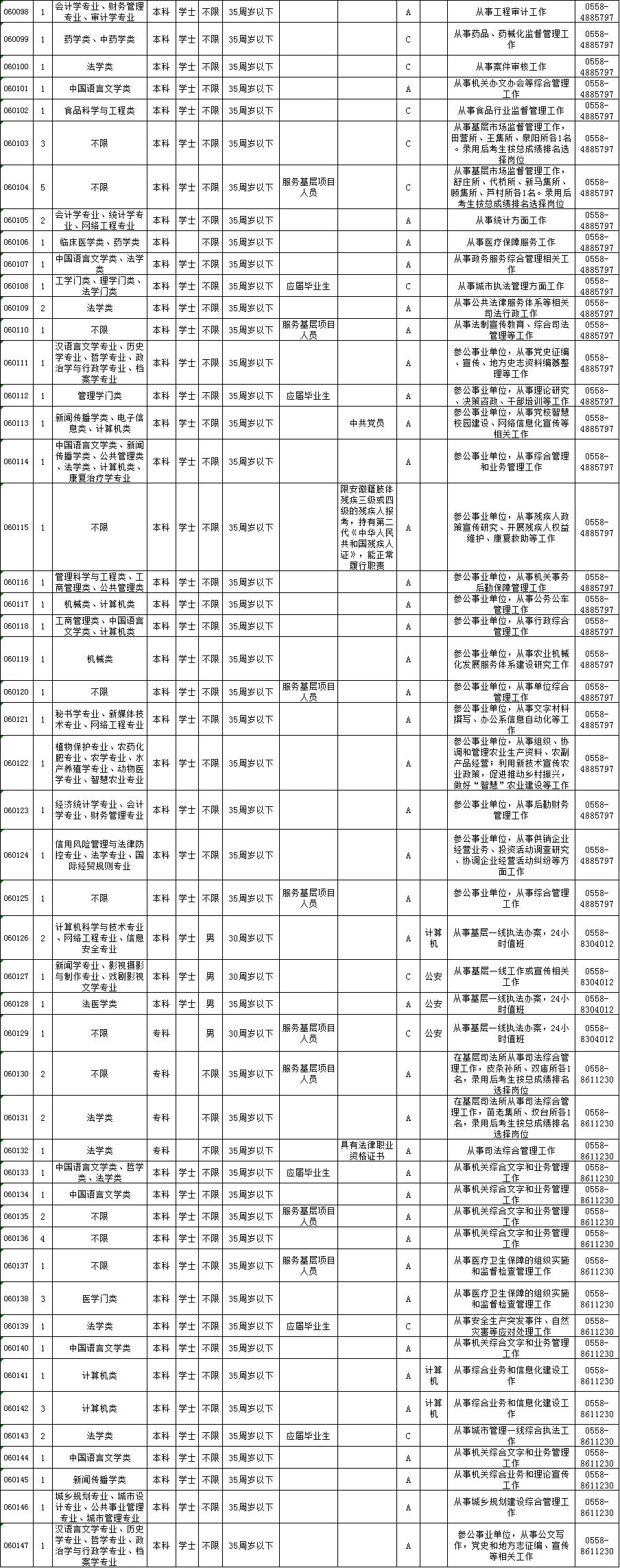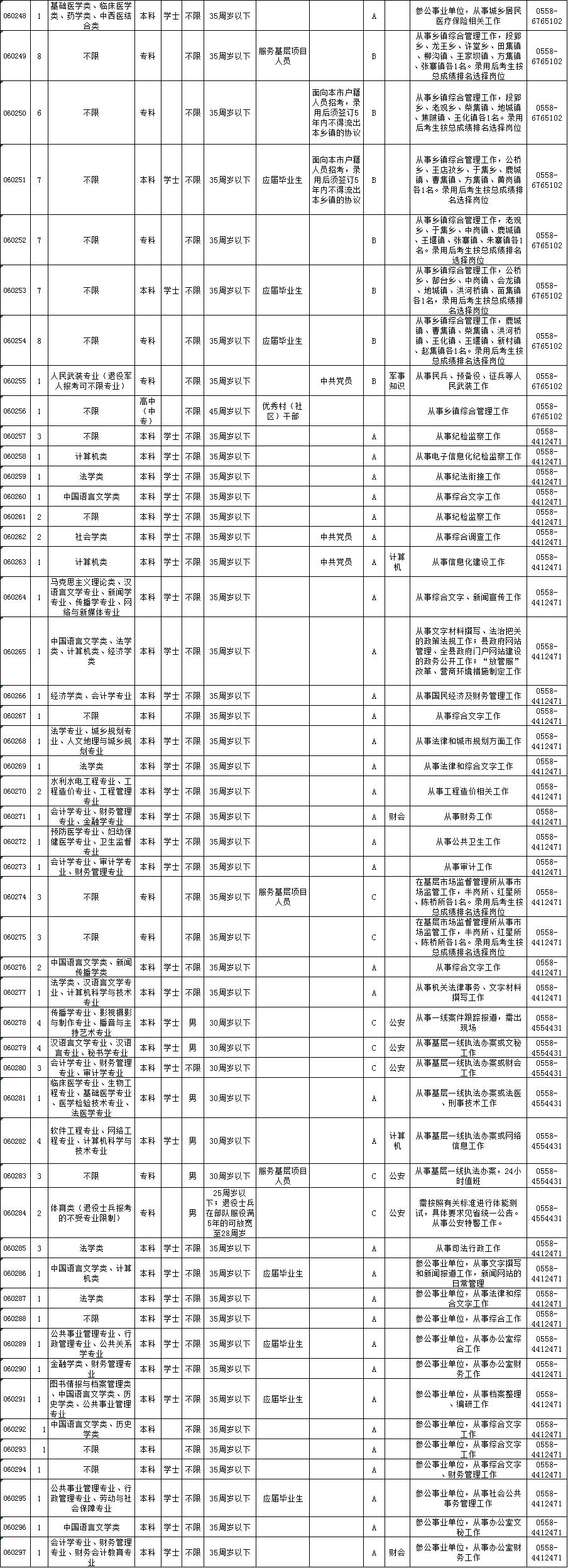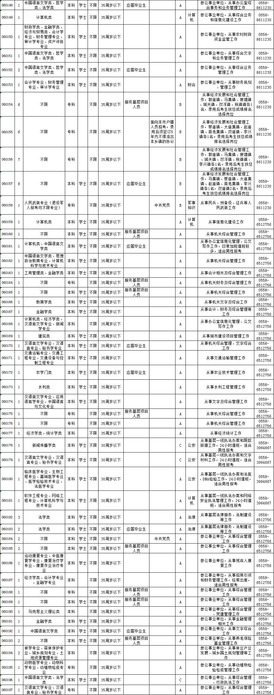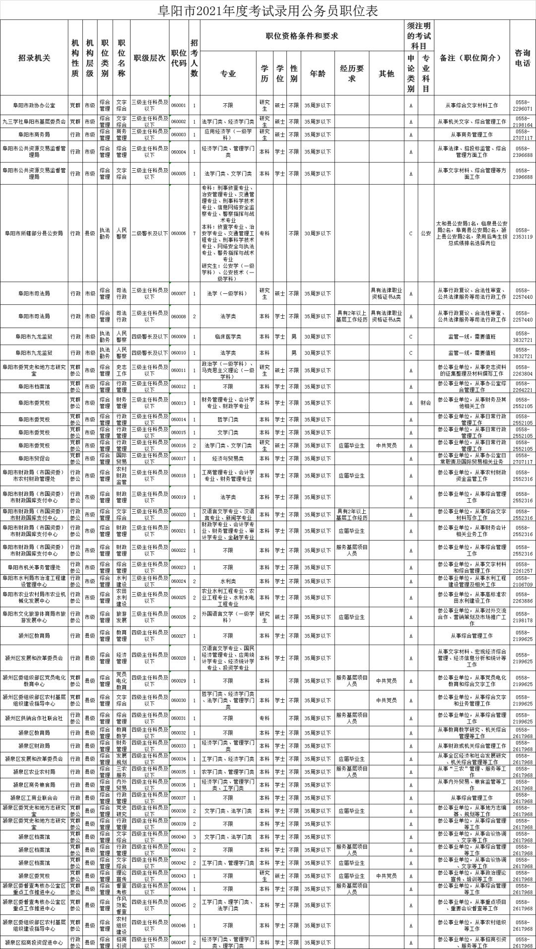 考试录用公务员职位表