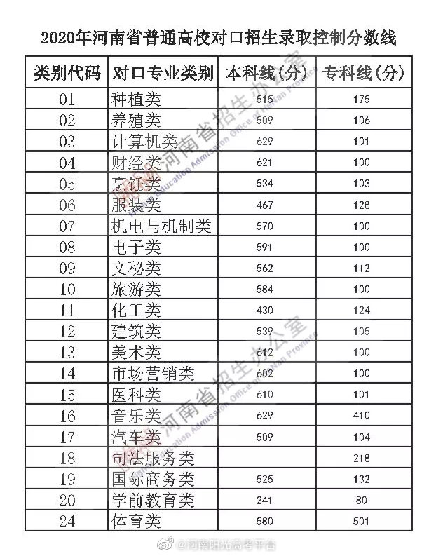 我省2020年普通高招录取控制分数线有关情况