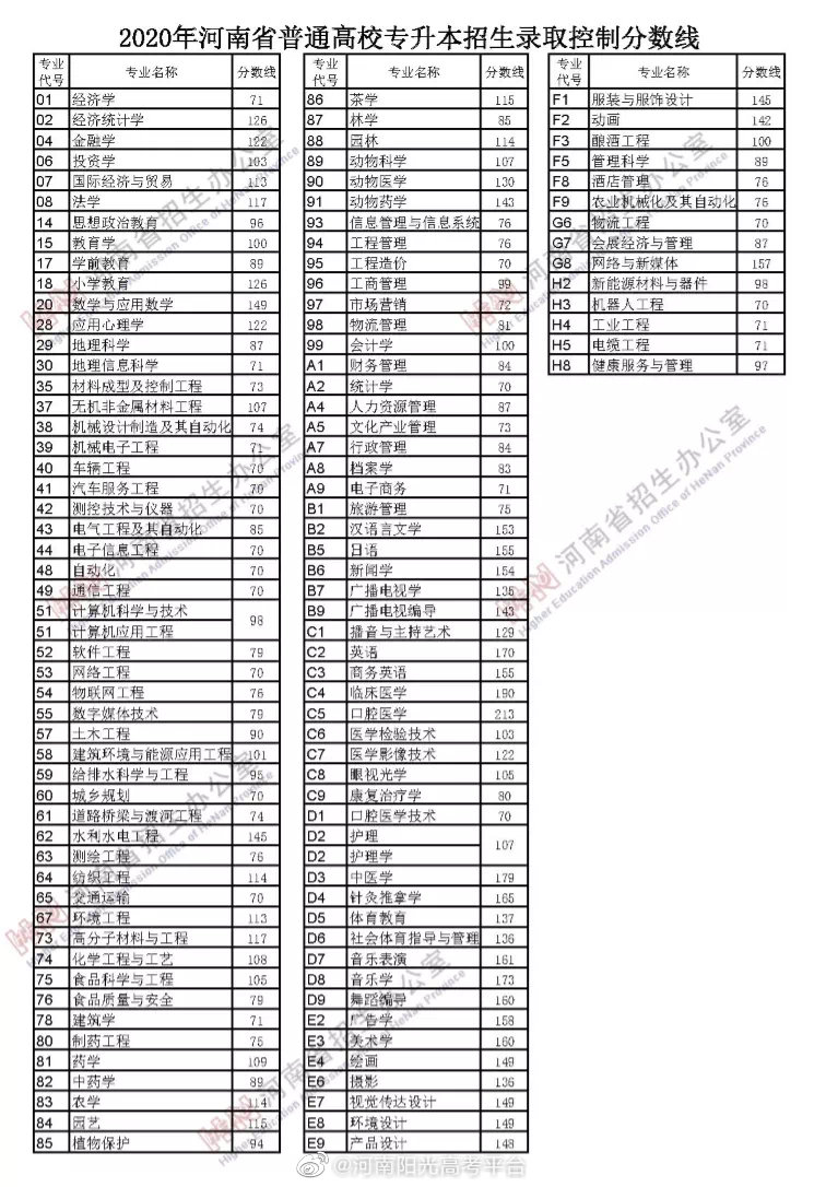2.我省本科一批文科分数线556分、理科分数线544分;本科二批文科分数线465分、理科分数线418分。与2019年相比,本科一批分数线文科增加20分,理科增加42分;本科二批分数线文科增加18分,理科增加33分。从分数线划定情况看,我省一本、二本分数线与使用全国I卷的省份变化情况基本一致。