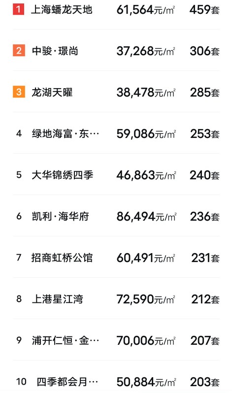 从上述数据可以看出排名前十的楼盘房价最低37268,最高86494,价格跨度大,各个价位需求量比较均匀,排名前十的楼盘中各个价位均含有。