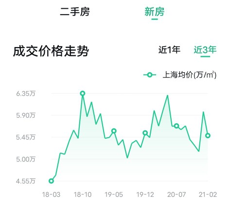 从上述数据可以看出自18年3月份以来上海房价成交均价呈现振荡状态,在5万-6.35万之上下波动。出现两个波峰和波谷,波峰接近6.35万,波谷接近5万。