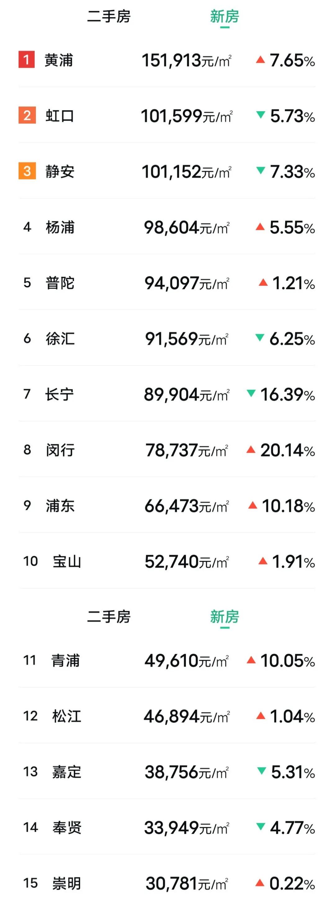 从上述数据可以看出上海黄埔区房价最高,高达15万以上,崇明区最低,大概3万左右。上涨最快的为闵行区,上涨幅度达到20.14%。下降幅度最大的是长宁区,下降幅度为而16.39%。