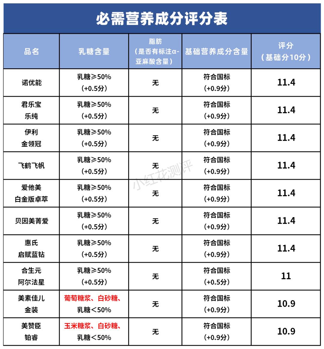 碳水化合物:乳糖含量越高越好,游离糖、麦芽糊精越少越好。