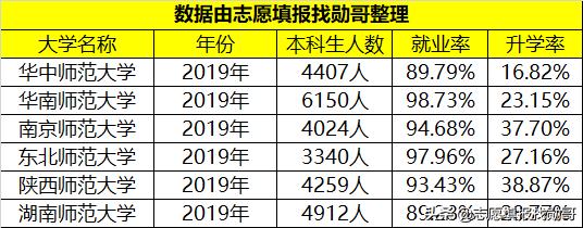 除去以上两所985师范大学,上图的大学中,还有6所211师范大学,分别是华中师范大学、南京师范大学、东北师范大学、陕西师范大学、华南师范大学、湖南师范大学。