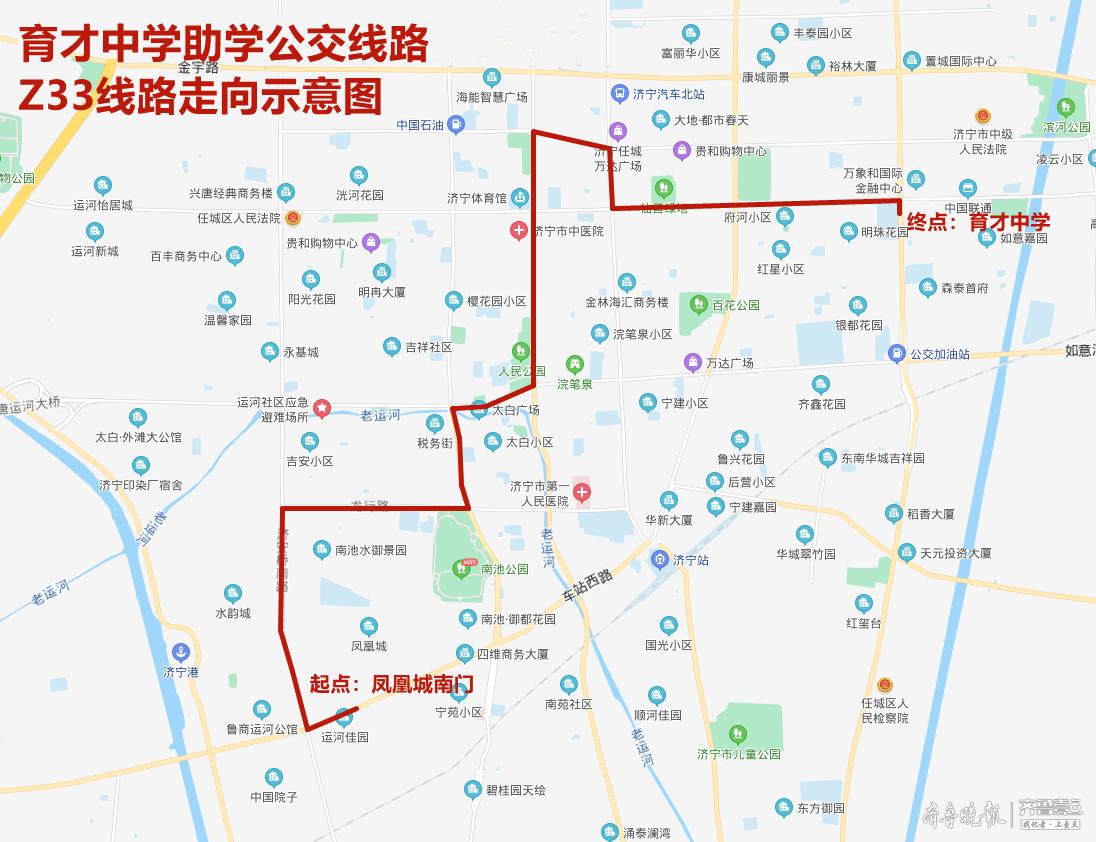 线路一(即Z33):早晨从车站西路凤凰城南门发车,沿车站西路—济安桥路—龙行路—王母阁路—太白楼路—共青团路—吴泰闸路—建设路—洸河路—火炬路,运营早、晚2个班次。
