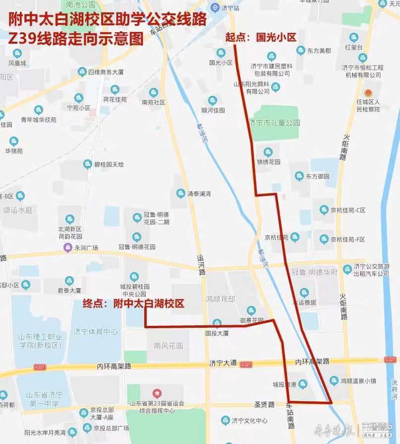 济宁学院附属中学太白湖校区“公交助学”线路: