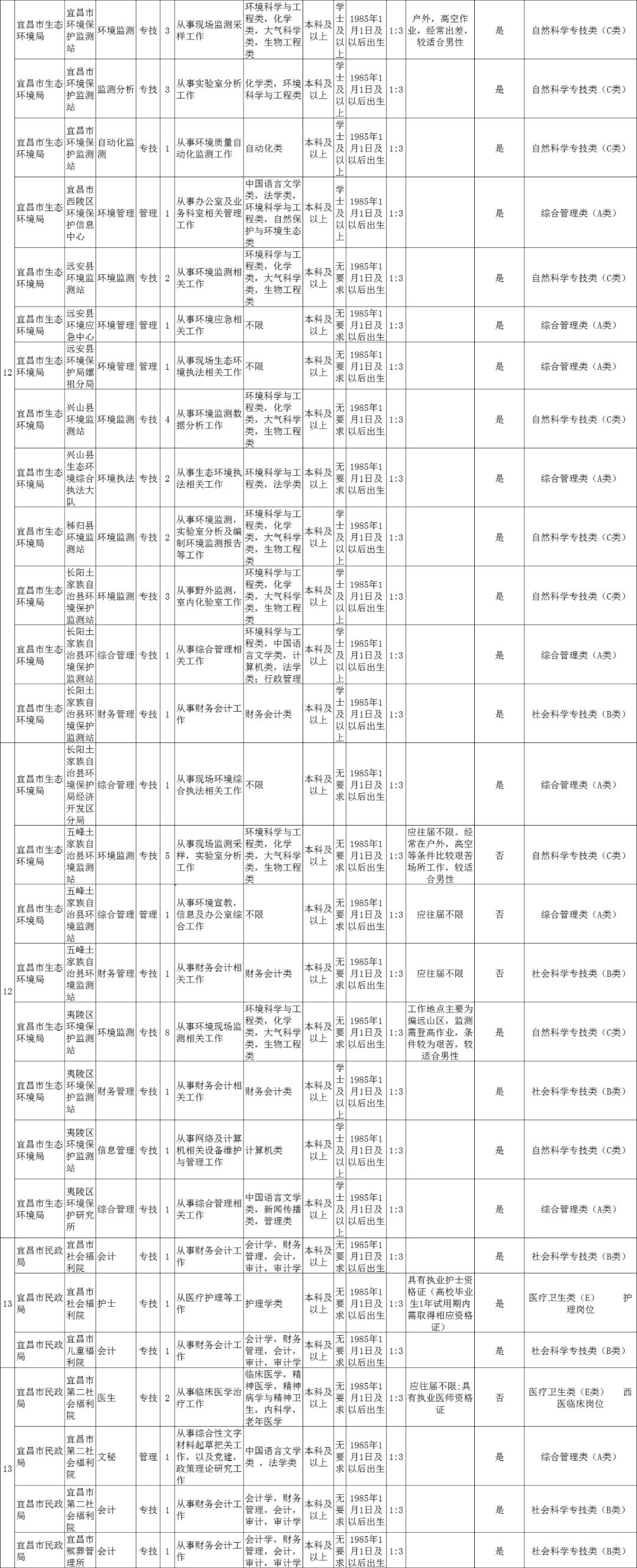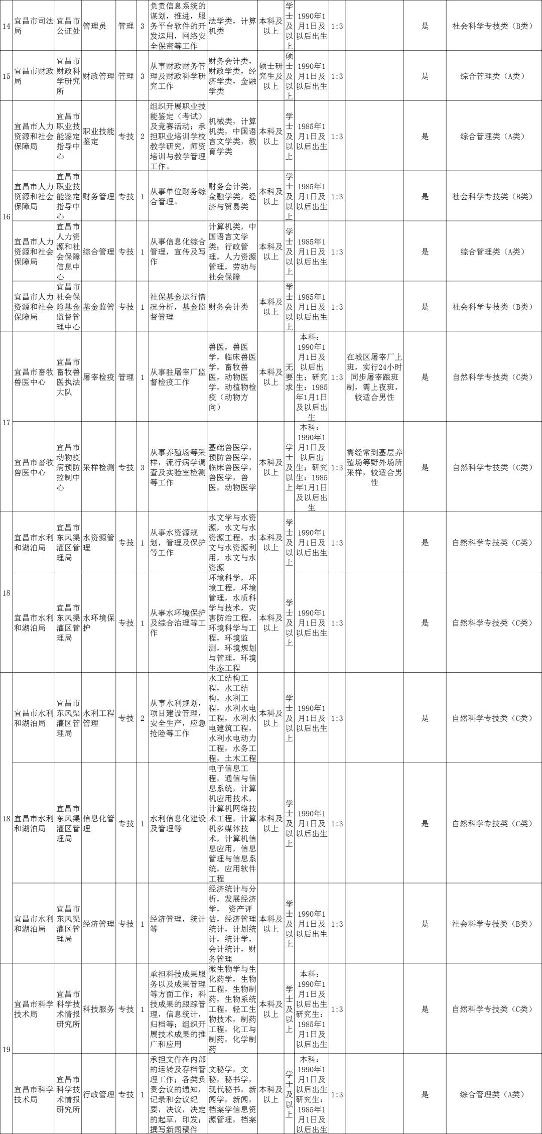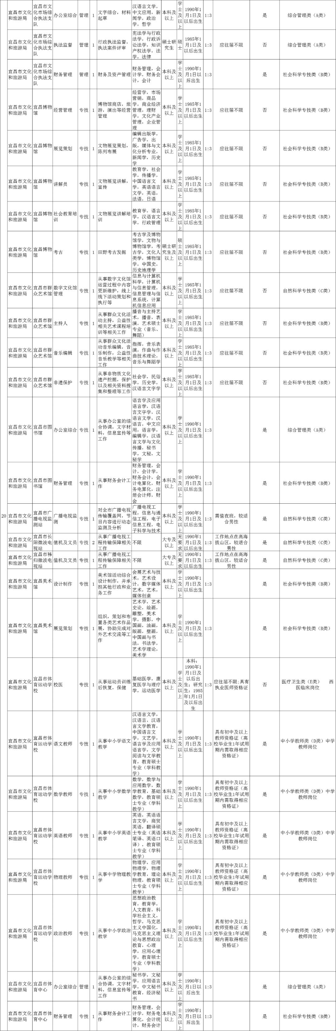 近日,宜昌市人社局发布《2020年宜昌市市直事业单位统一公开招聘工作人员公告》。宜昌市直70个事业单位147个岗位,共招聘232人!