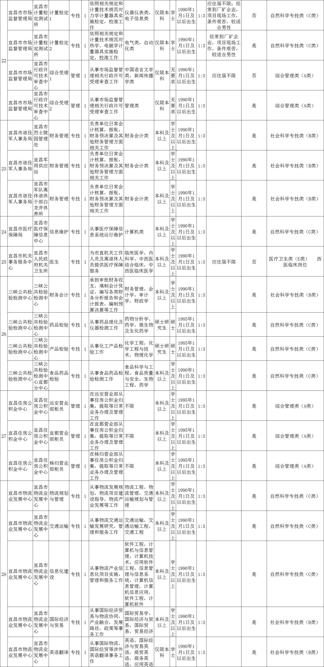 宜昌市直70个事业单位147个岗位,共招聘232人