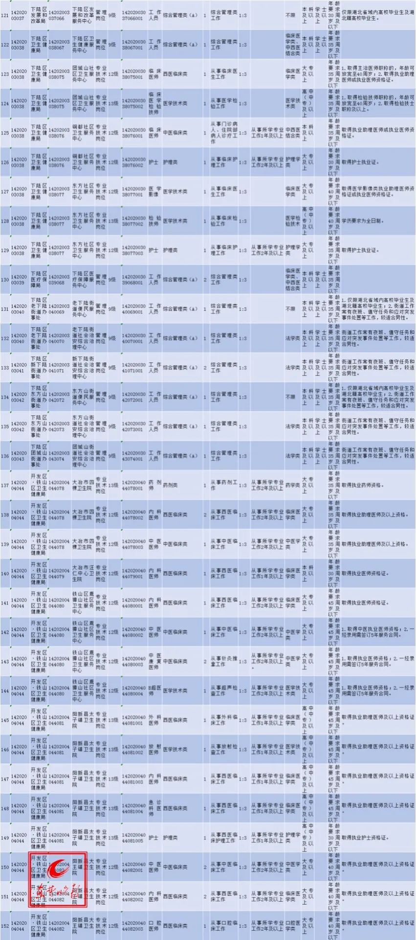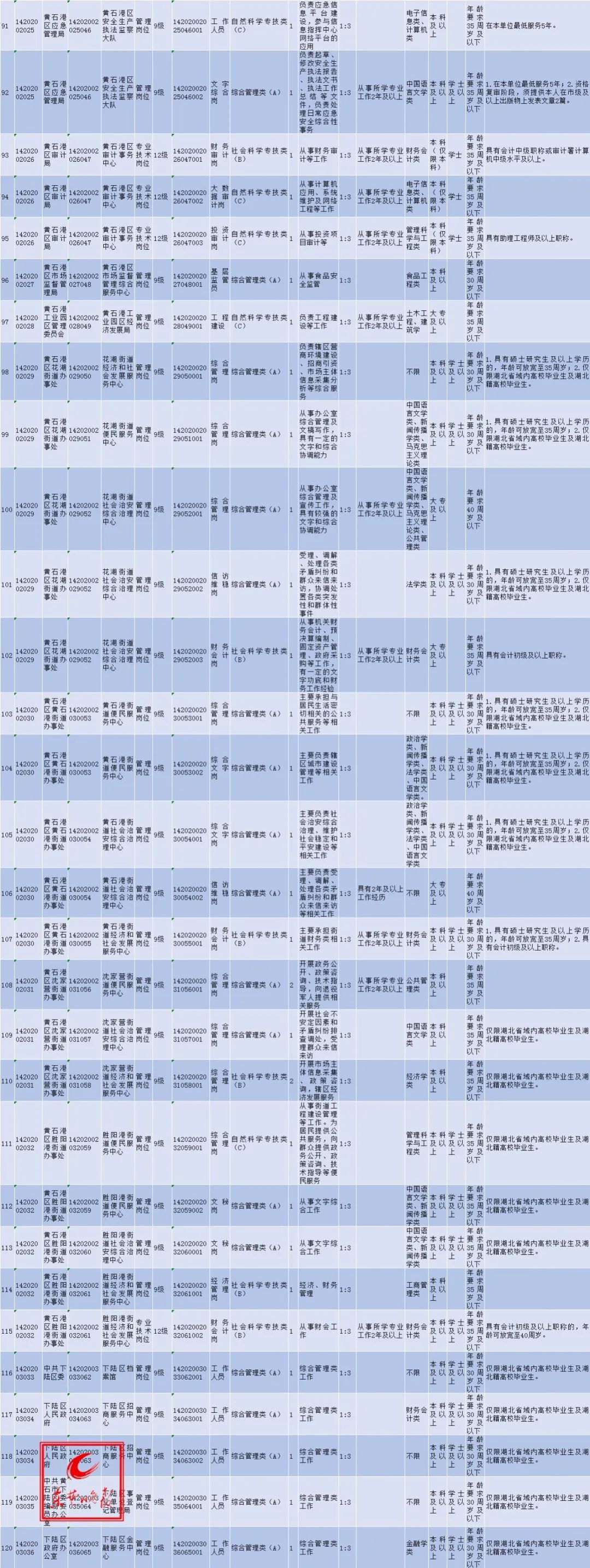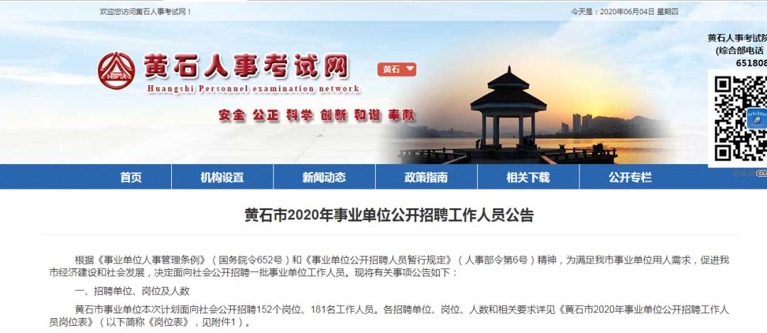 黄石市2020年事业单位公开招聘工作人员发布公告,黄石市事业单位本次计划面向社会公开招聘152个岗位、181名工作人员。