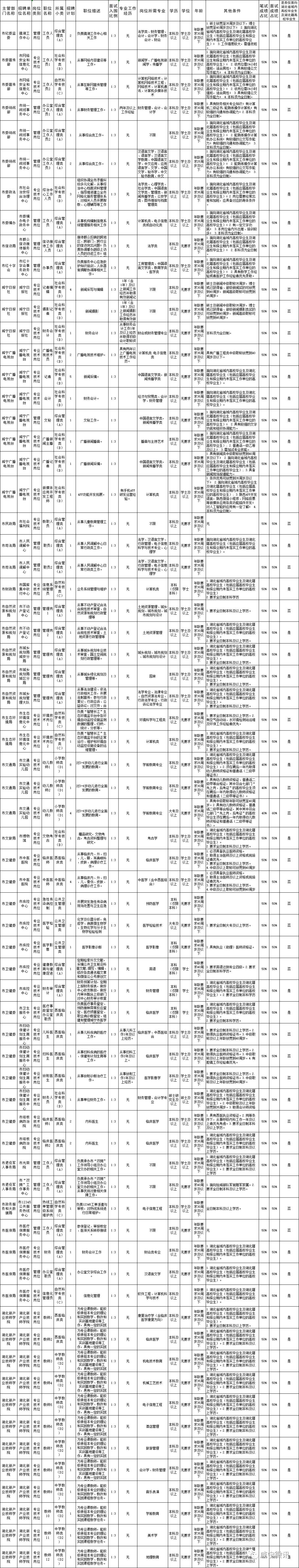近日,湖北多地发布事业单位招聘公告