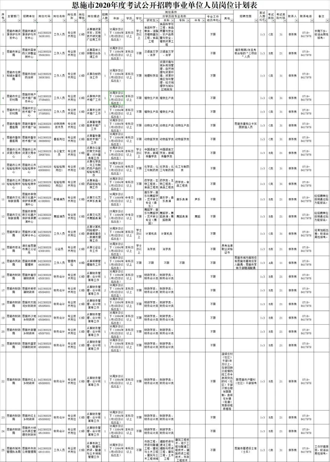点击查看:荆门市事业单位2020年面向社会统一公开招聘岗位表.xlsx