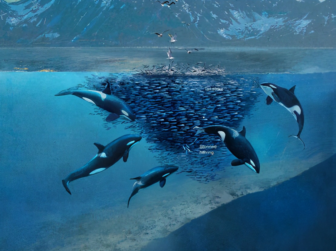 提到虎鲸,就不得不提到它们的智商了,研究发现它们的智商水平非常高,它们会使用非常复杂的狩猎手段来猎杀特定的猎物。比如:虎鲸发现鱼群之后,会有条不紊地从各个方面围攻,然后将其吃掉。