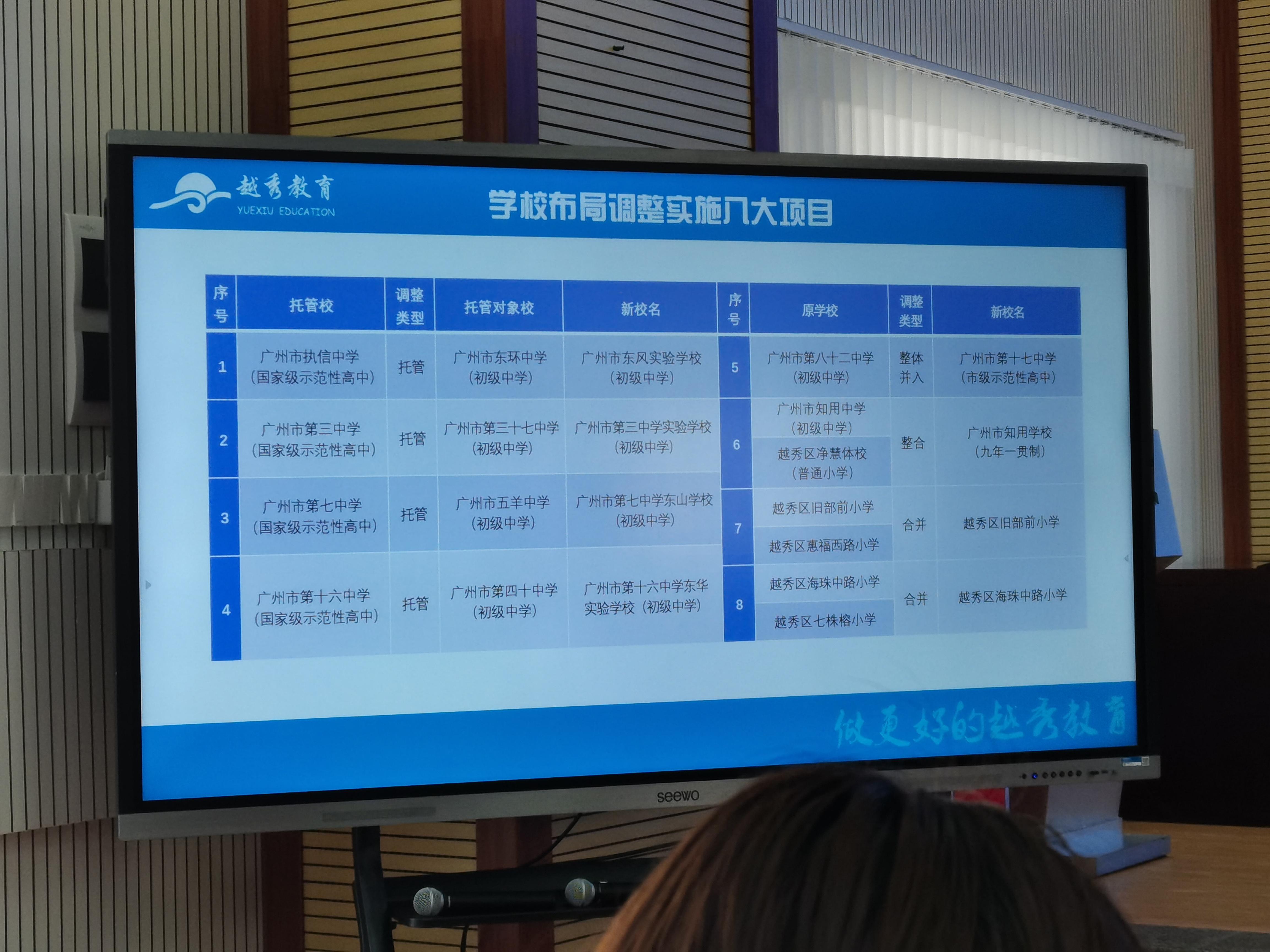 其中,广州市执信中学托管东环中学,东环中学更名为广州市东风实验学校;广州市第七中学托管广州市五羊中学,五羊中学更名为广州市第七中学东山学校。