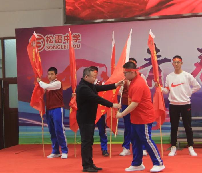 最后,在同学们雄壮的口号中,宋校长为每个班级颁发战旗,愿松雷2021中考战队利刃出鞘,横扫千军!战旗舞动,誓言昂扬!松雷战队霸气出征,气冲霄汉!