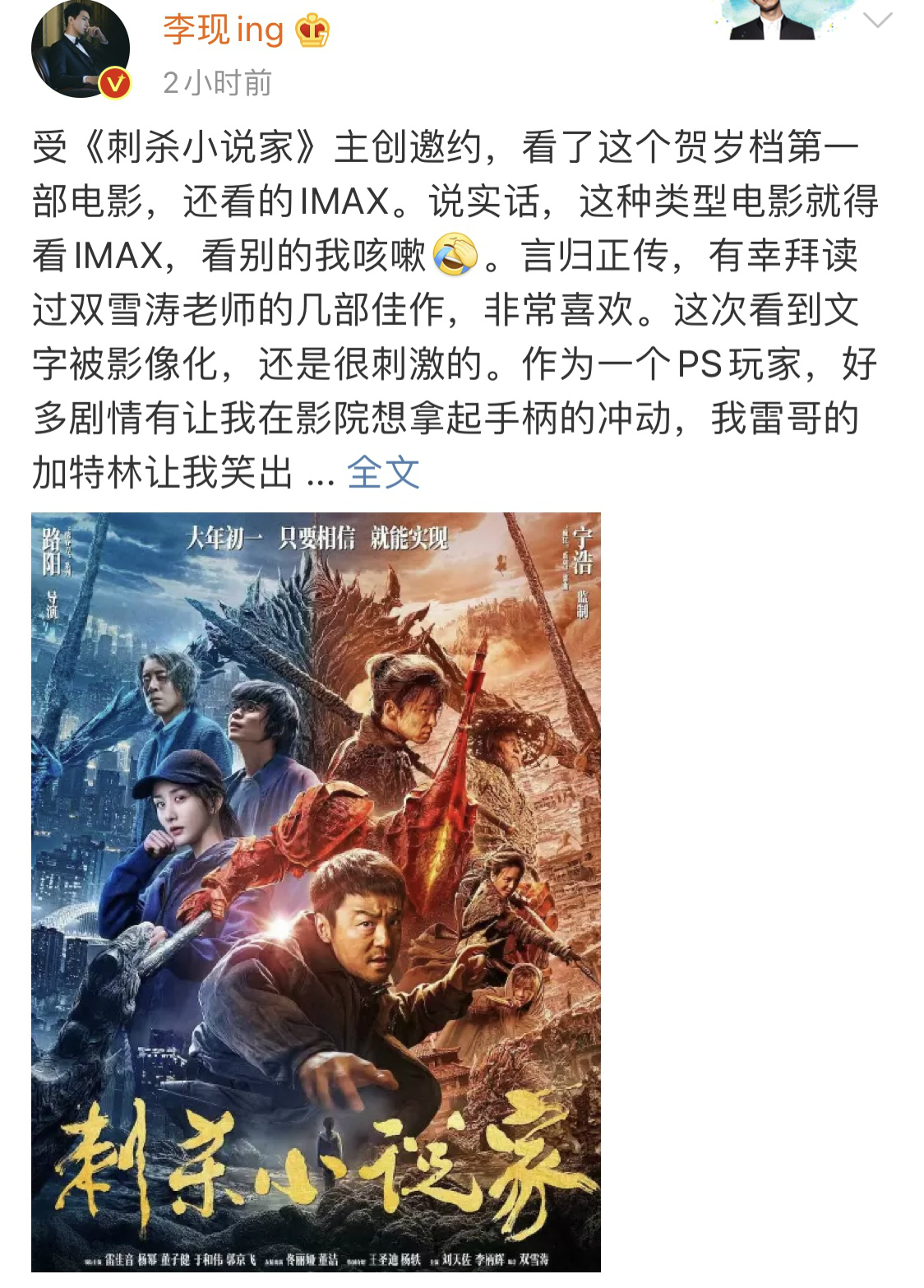 李现的开工日奉献给了电影《刺杀小说家》,虽然只有一篇短文,可是看得出诚意满满。