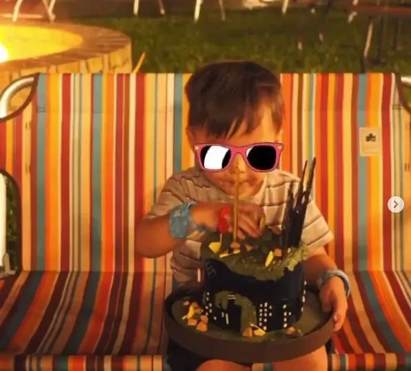 照片中三岁的罗密欧这次正脸出镜,虽然被打上了墨镜的标签,但是嘴巴和鼻子都很像周杰伦了,肉嘟嘟的小圆脸搭配顺毛刘海造型,看起来就特别乖巧可爱。