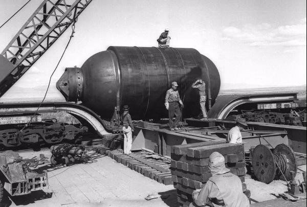 有熟悉元素的朋友一定有话要说了,氘和氚都是气体,一千克氘和氚即使压缩体积也大得很,就算低温冷冻液化了也没有超重元素铀和钚来得体积小,而事实上也确实如此,美国的第一枚“氢弹”装置,用了低温冷冻的杜瓦瓶,总重量达到了60多吨,连火车拉都费劲,这氢弹能用吗?