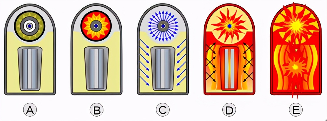 很显然效率最高的内爆式也只达到了16%左右,而现代起爆模型以及外部的中子反射层做到极致后,其效率仍然不高,因此一般原子弹的最大当量很少会超过30万吨TNT当量