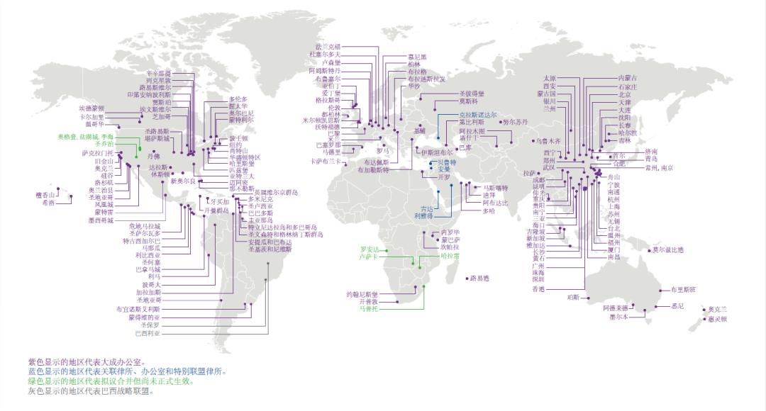 而在与Dentons合并后,大成加快了扩张的步伐。2016年4月,大成与新加坡历史最悠久的Rodyk律所合并;同年12月,大成继续扩张,正式与澳大利亚近百年历史的Gadens律所合并,大成全球布局迈出重要的步伐。