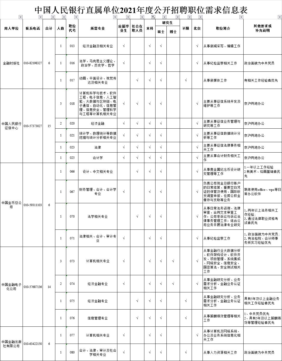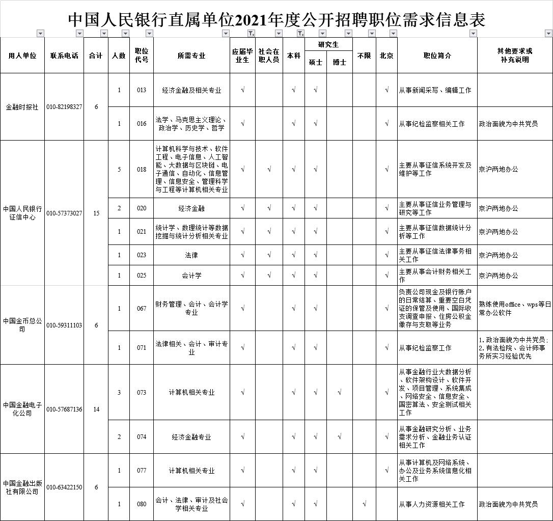 昨日(10月9日),2021中国人民银行招录公告发布,共计招录4600人。其中,人行直属单位招录80个岗位,116人,分支机构招录1840个岗位,4484人。今天,小编就来带大家一起分析下此次招录公告中的职位表,希望对大家选择合适岗位有所帮助。