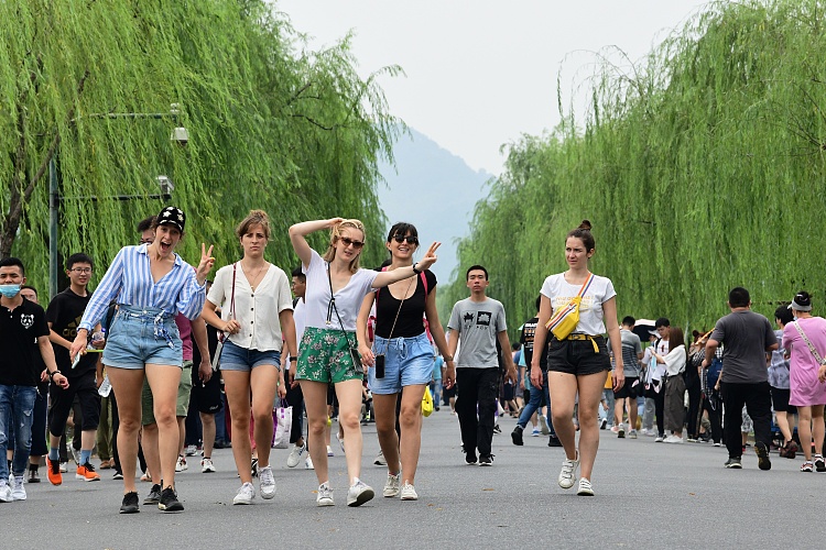 2020年7月18日,杭州,市民、游客在西湖景区游玩。