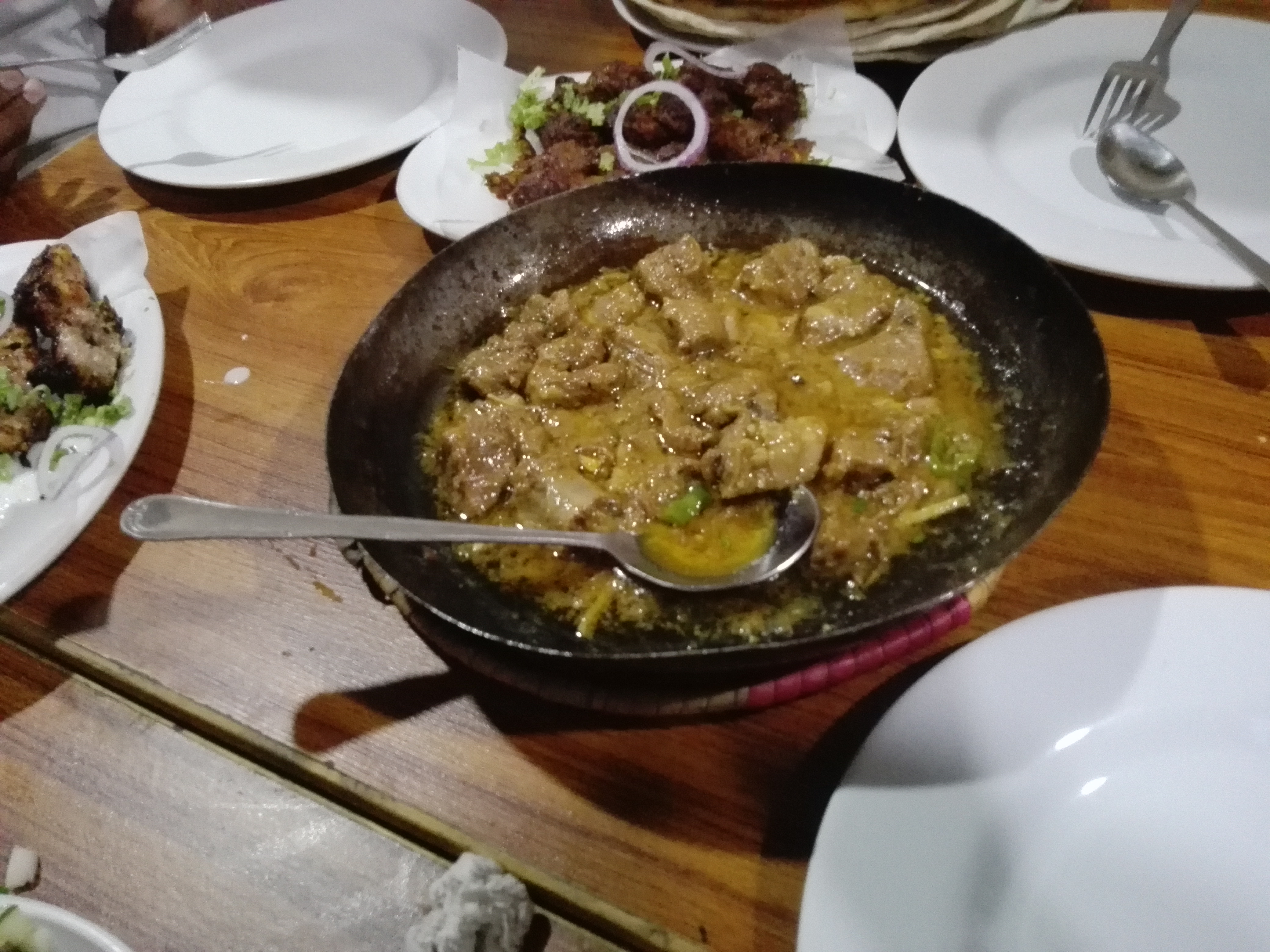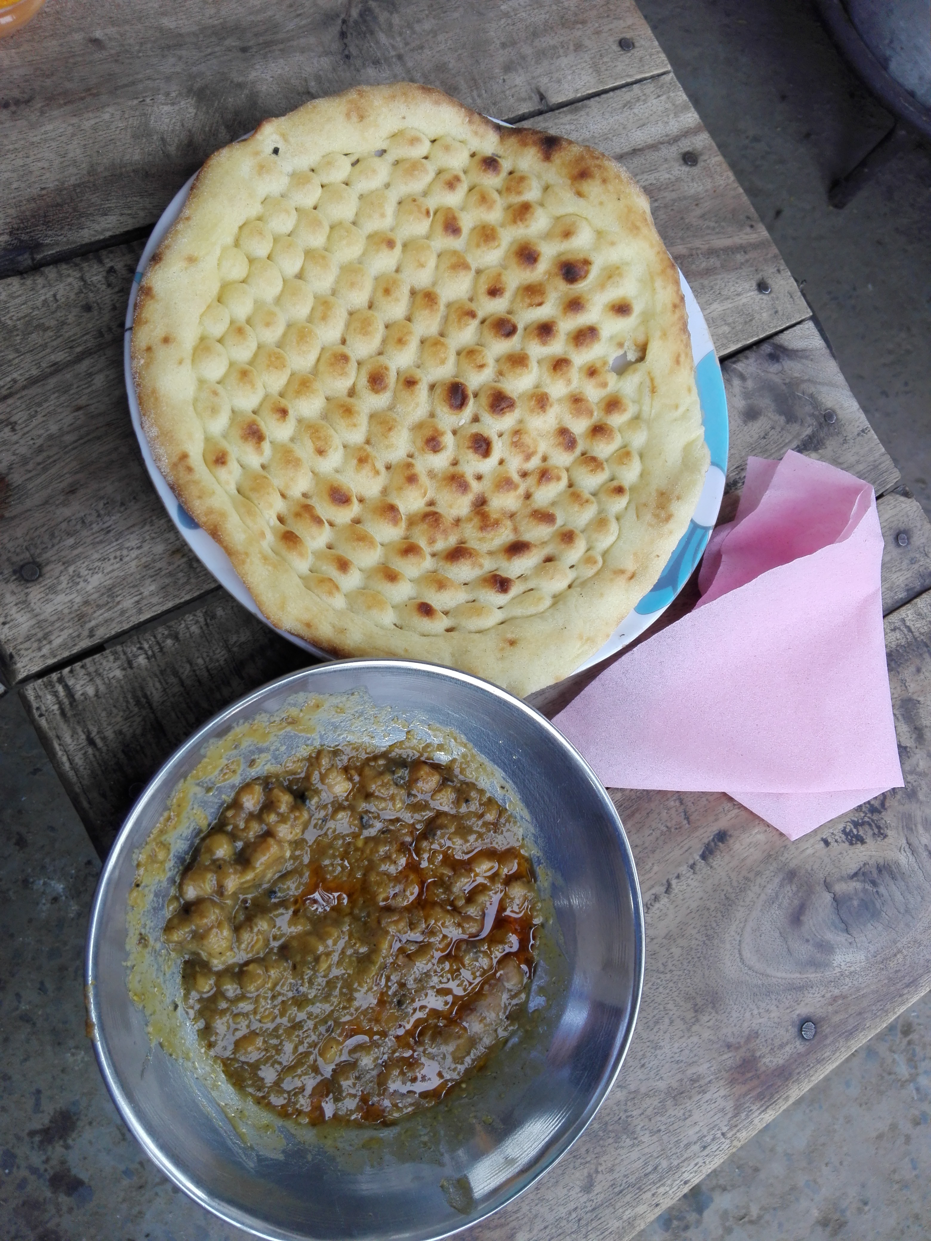 巴基斯坦货币叫卢比,最大面值是5000卢比,目前兑人民币的汇率是25:1,相当于200元人民币,然后还有1000卢比、500卢比、100卢比、10卢比的纸币,硬币是5卢比,2卢比和1卢比的。我们每月能领到40000卢比的补助,相当于1000多块人民币,平常买衣服和生活用品也够了,这里的消费不多,因为平时严格管制,很少有机会出去消费,项目上管吃住,也很少下馆子。当地的馆子也不像中国那样遍地都是,各种口味都有,这里的餐馆基本只卖那几种食物,饼、咖喱鸡肉、咖喱羊肉,可选择的青菜类不多,不太符合中国人口味。