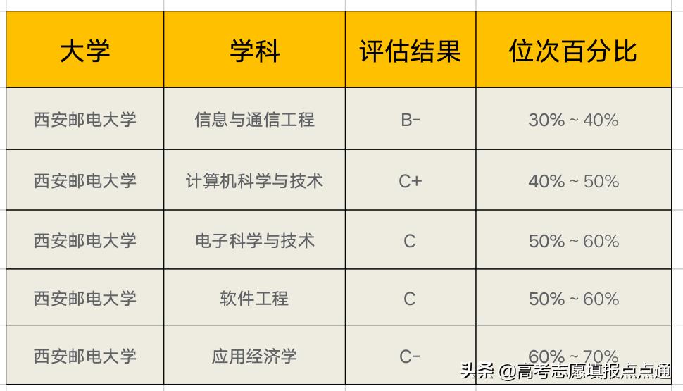 从第四轮学科评估表现情况来看,西安邮电大学的信息与通信工程B-、计算机科学与技术C+,两个学科表现突出,学校学科评估表现整体较好。