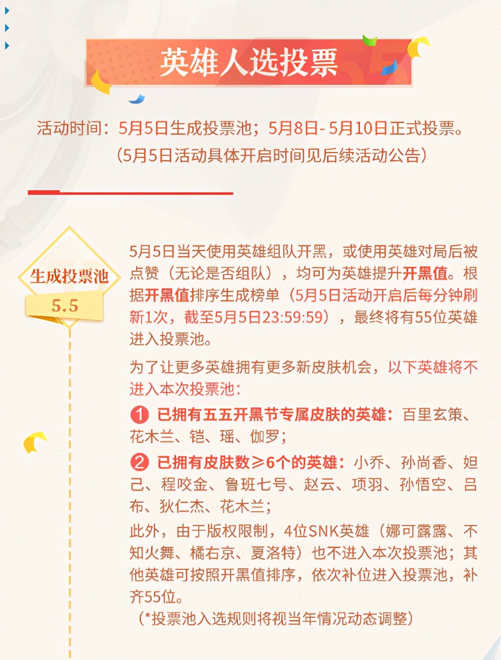相信小伙伴们都知道,王者荣耀五五开黑节的活动还在进行当中,最后第一名的英雄将会拥有明年的五五开黑节皮肤,赶紧来看看吧!