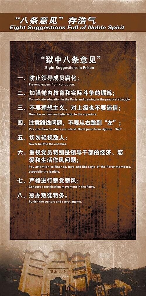 如果说,当年的叛徒出卖的是党的组织,是党员的生命,那么今天的腐败分子出卖的则是党的形象,是党和人民的血肉联系。“狱中八条意见”第一条就提到了“防止领导成员腐化”。如今,党中央对反腐败斗争的坚定信心和坚强决心,也是对其的传承延续。