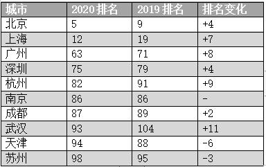 表2:部分中国上榜城市综合排名 来源:科尔尼2020年全球城市指数报告