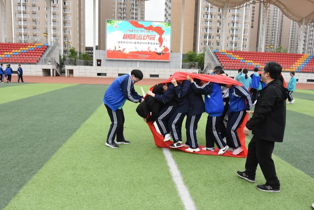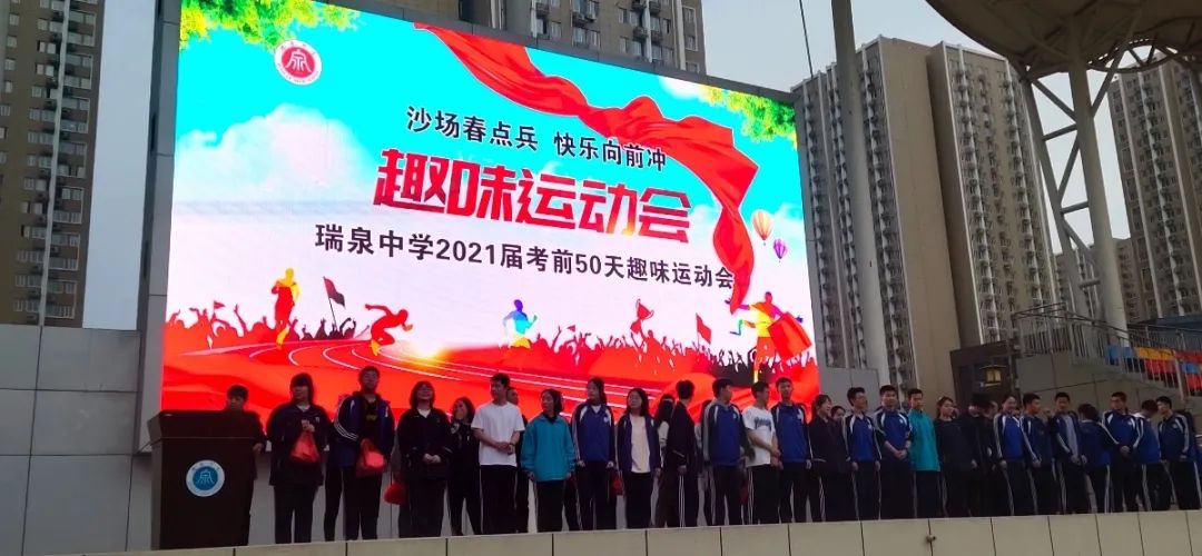 为帮助高三学生舒缓备考压力,引导学生以阳光自信心态面对后期复课,4月19日下午,瑞泉中学2021届“沙场春点兵,快乐向前冲”趣味运动会在操场举行。