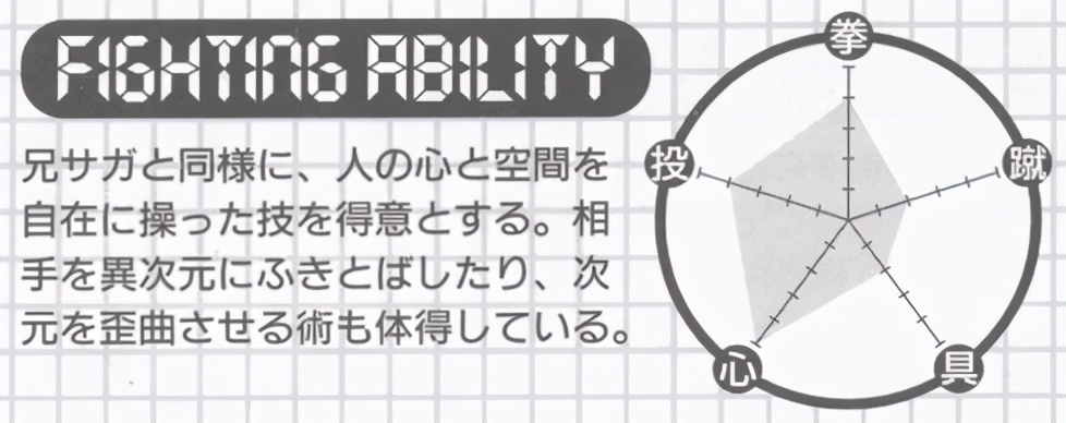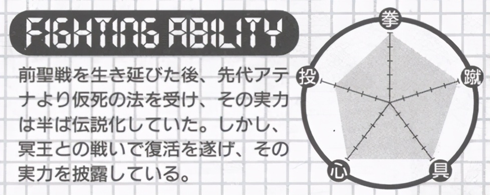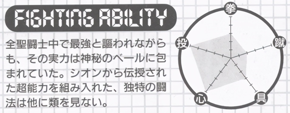 与漫画中设定差不多,拳术和投技达到顶峰,一个站桩型战士形象呼之欲出。不过让人感到惊讶的是,念力居然也能达到3,漫画中有这方面的表现吗?