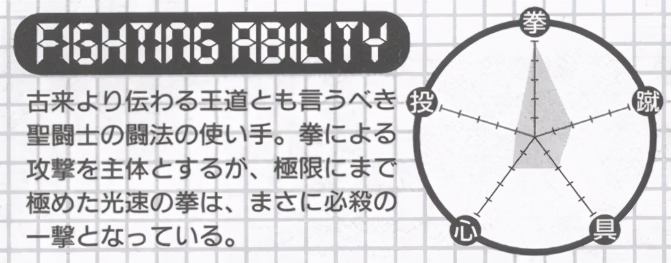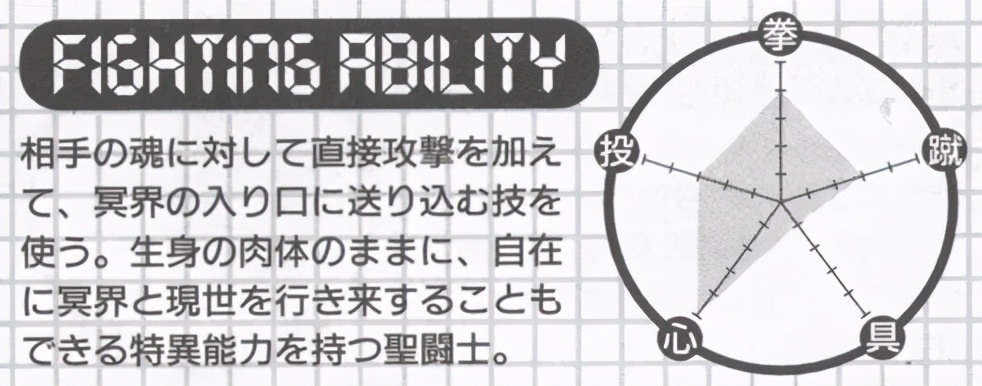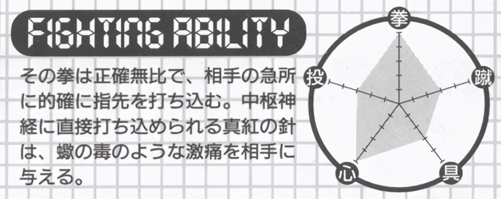 《大全》将角色划分成五个属性,分别是拳(拳术)、蹴(腿术)、具(道具)、心(念力)、投(投技),给了大家讨论漫画中人物实力的参考。