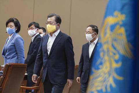 文在寅说,政府需要最大限度地确保财政预算,以迅速应对突如其来的危机情况,为此政府将大刀阔斧地调整政府预算。(海外网 刘强)