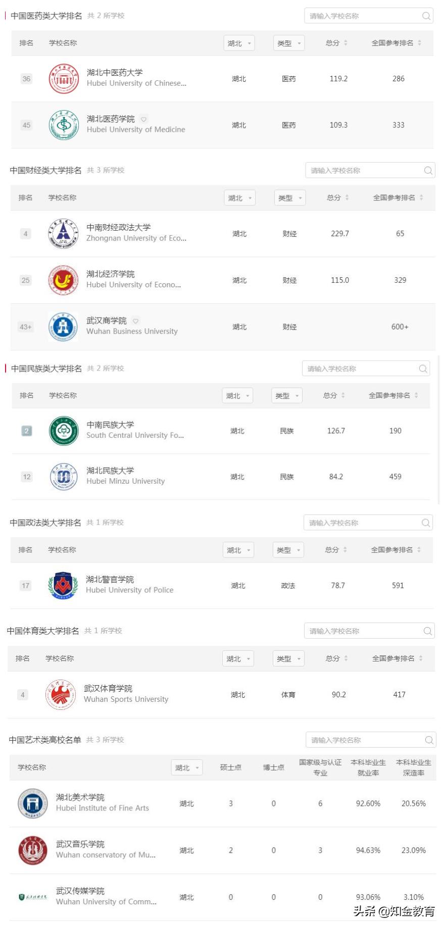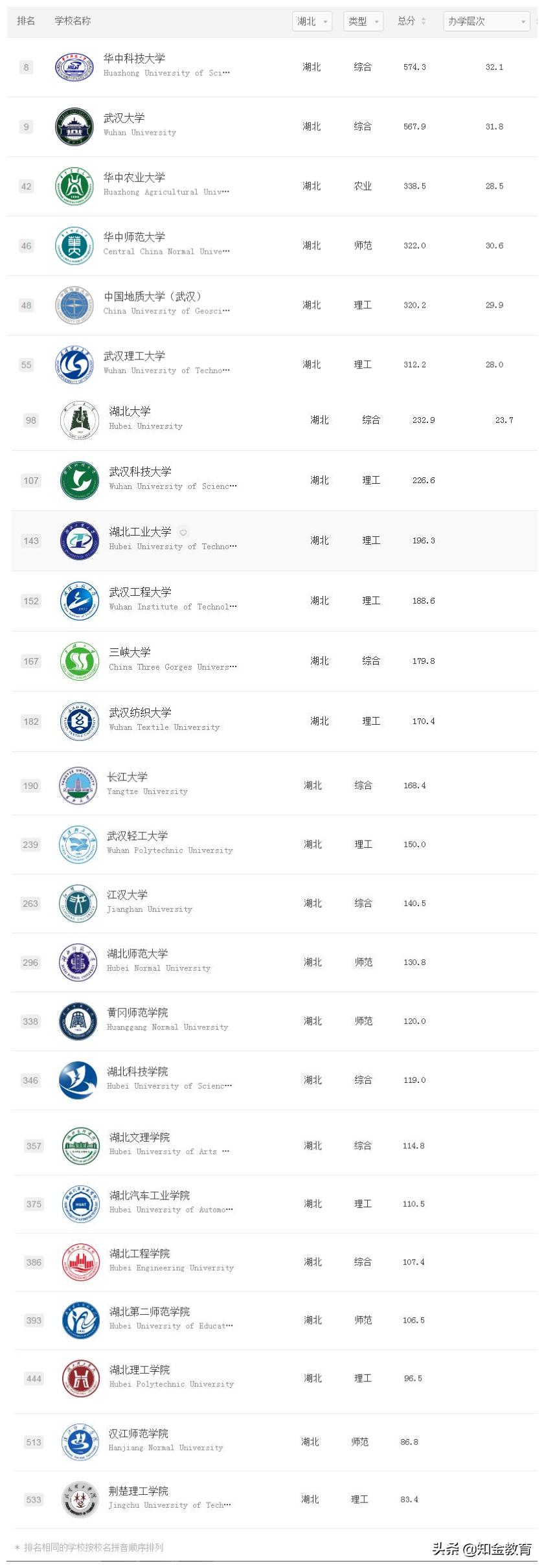2021湖北省大学排名(全国排名)