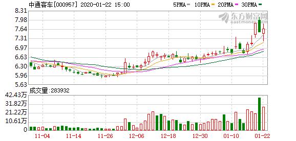 2020年2月13日,中通客车A股开盘7.65元,全日上涨1.43%,股价收报7.81元。自2020年2月11日以来,中通客车收盘价连续三日收于年线(250日均线)之上。