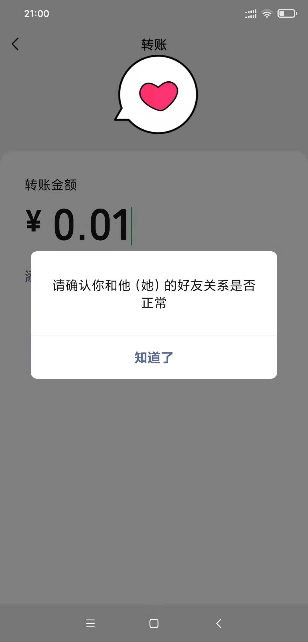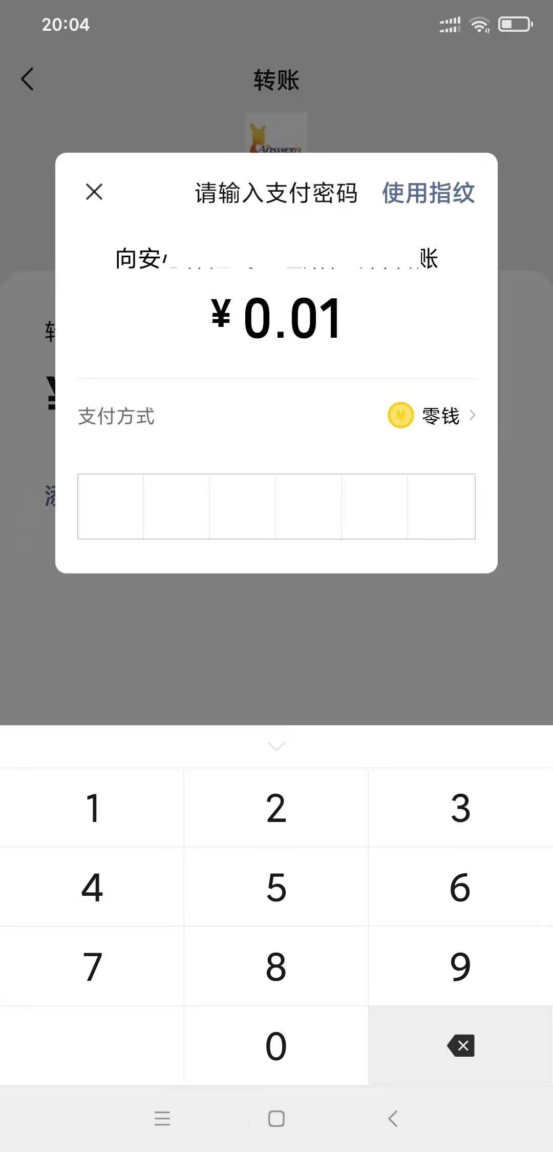 第二,点击转账,金额输入一分即可(不用真转)